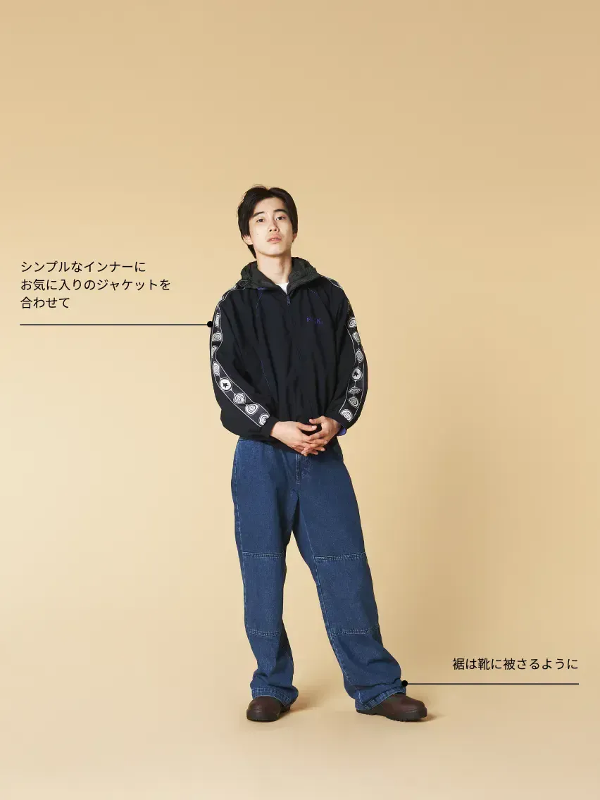 バギーに切るのが最高にかっこいい「3サイズアップ」は王道ストリートスタイルに欠かせない一着です。
