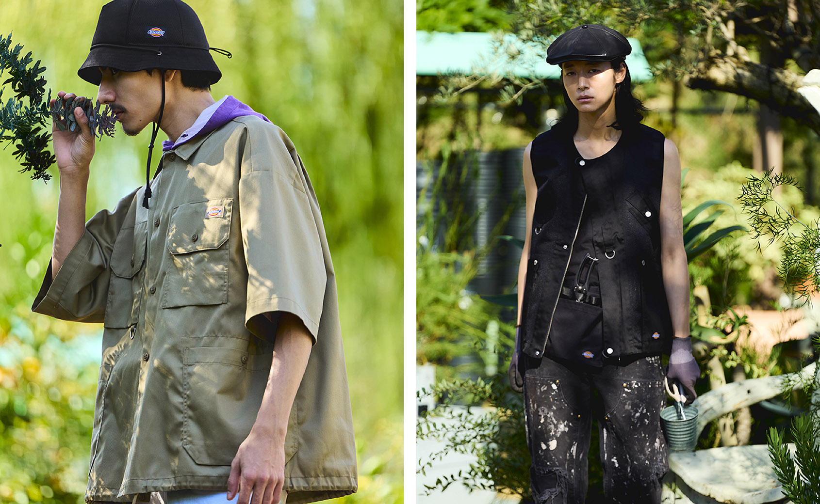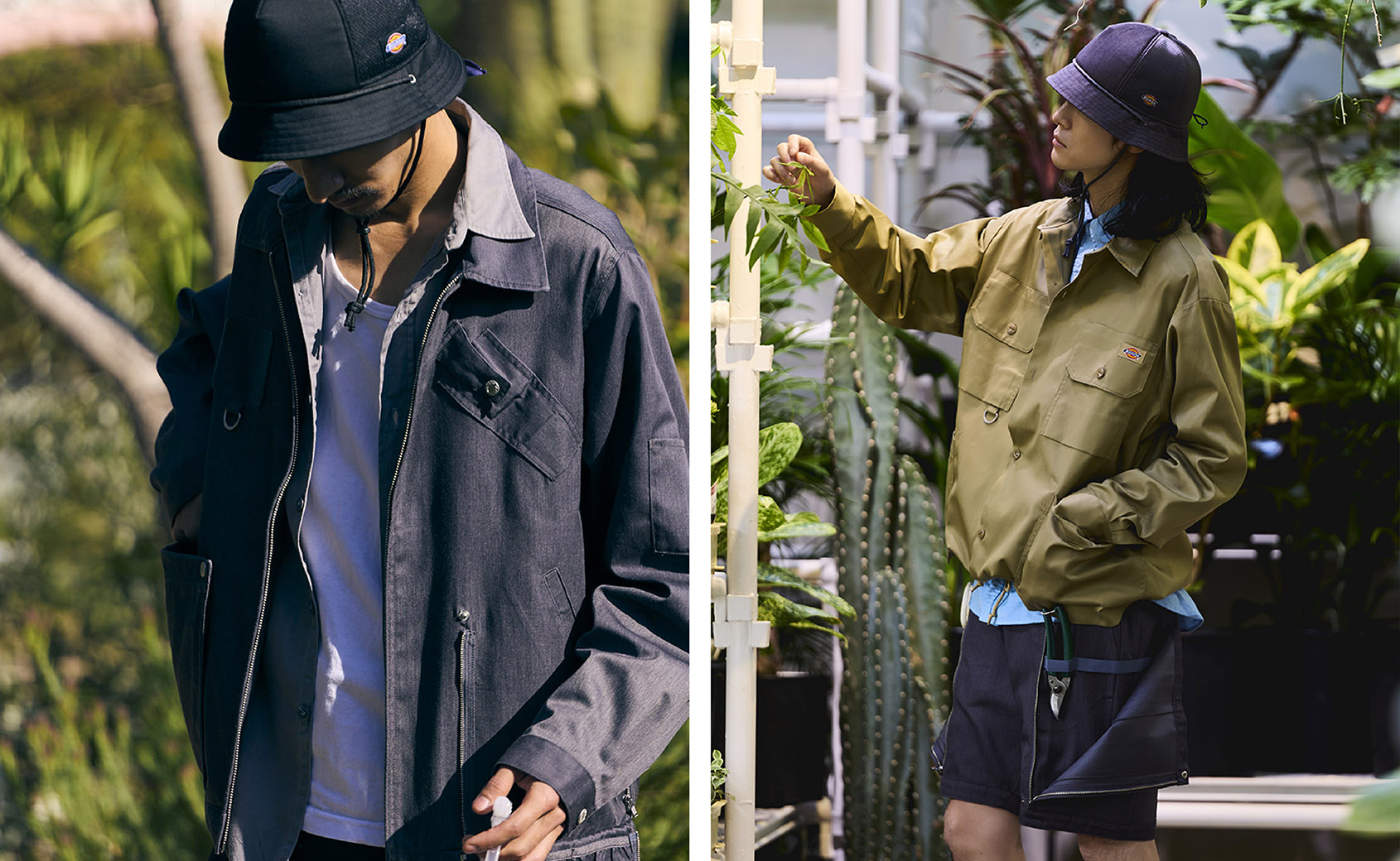 norbit / Wfeld のデザイナー・野澤氏と共に開発し、Dickiesの定番『874』パンツや『Eisenhower』ジャケットをベースに再設計。